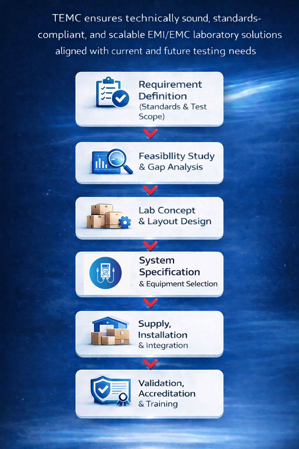 TEMC ensures technically sound, standards-compliant, and scalable EMI/EMC laboratory solutions aligned with current and future testing needs